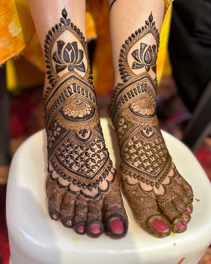 Bridal Feet Mehndi designs add elegance and perfection to a bride’s overall look. Detailed motifs, symmetrical patterns, and traditional elements enhance the beauty of the feet, making every step of the bride truly graceful.